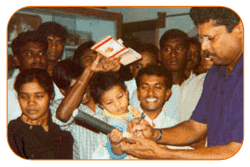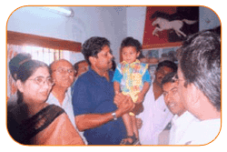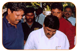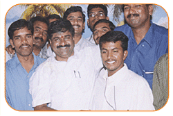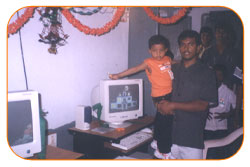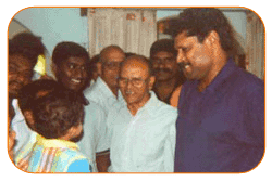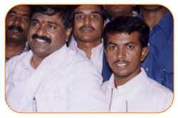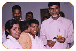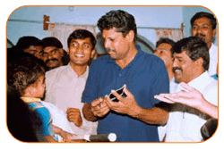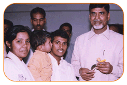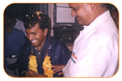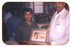 | Mr. N Bitra Receiving A memento from Pinnamaneni Venkateswara Rao, Minister Technical Education, on the occasion of 56th Independence Day (15th August 2003). Bitra Net Pvt. Ltd., has donated two letest configuration computers to a School located in Puttagunta (Krishna Dist, Andhra Pradesh) |