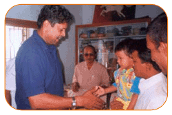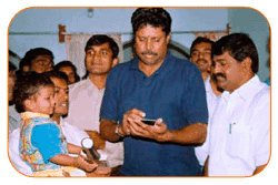| Mr. N Bitra & Bill Bitra, Sri PNV Prasad, Ex.SAAP Chairman With Mr. Kapil Dev. The occasion of Kinetic Boss Vehicle Opening at Bitra's House At Banjara Hills, Road No. 10, On 21st Oct'2002. |