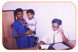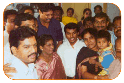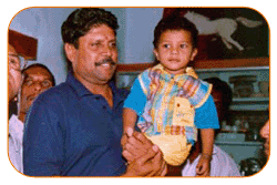 Mr. N Bitra, Friends & Family, With Mr. Kapil Dev & Sri PNV Prasad, Ex. SAAP Chairman, The occasion of Kinetic Boss Vehicle Opening at Bitra's House At Banjara Hills, Road No. 10, On 21st Oct'2002. |